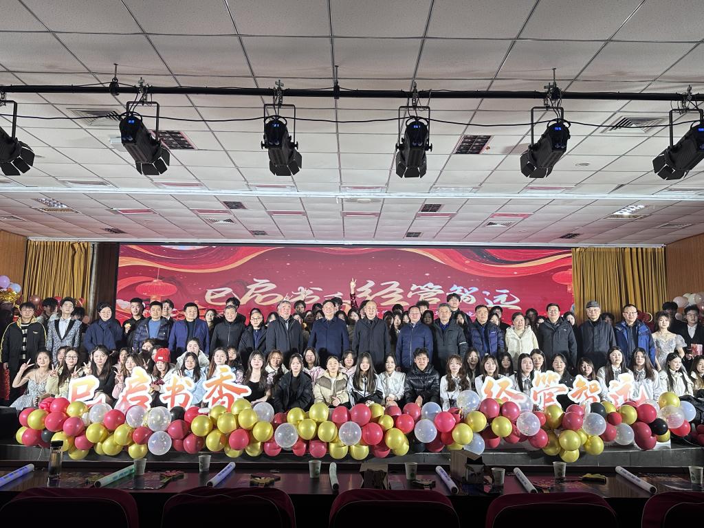 龙舞丰年辞旧岁,蛇逢盛世迎新年。12月23日晚,经济管理系在德礼堂举办“巳启书香,经管智远”2025年元旦晚会。校党委副书记、副校长蒋彦成,纪委书记张志淮,校党委副书记、工会主席魏义军,副校长包永刚,副校长王玉振,有关部门负责人,经济管理系教师及23级和24级学生代表参加。