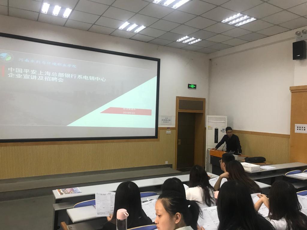 5月14日下午,中国平安上海总部银行系电销中心企业到经济管理系进行了企业宣讲及人才招聘,我系2017级会计类专业学生200余人参加了此次招聘。招聘会上,平安上海总部的高经理通过企业宣传视频,展示了改公司的企业文化建设、行业优势以及各岗位的招聘信息。同学们也结合自己的实际情况,向该公司提交了岗位面试单,展现出良好的就业意愿。