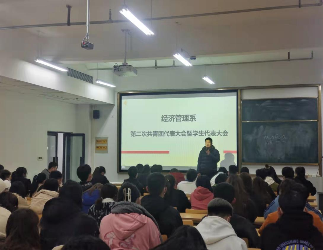 11月23日,经济管理系召开第二次共青团代表大会暨学生代表大会。系党总支书记钟含、主任肖文珍,学管老师、团学干部及学生代表参加。大会在庄严的国歌声中开幕。肖文珍致大会开幕词,对本系一年来的团学工作给予肯定,希望新一届团学干部发挥自身示范引领作用。本次会议通过选举办法、代表资格审查报告、候选人发言等环节,选举产生了新一届团总支副书记和学生会主席团成员。钟含在闭幕词中提出四点希望:一是要放眼大局,准确定位;二是要树立榜样,自我提升;三是要着眼学生,创新工作;四是要饱含热情,竭诚服务。最后,大会在热烈掌声中落下帷幕。