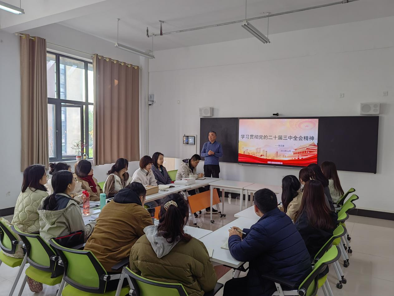 为深入学习贯彻党的二十届三中全会精神,落实好立德树人根本任务,11月21日,校纪委书记张志淮走进课堂,为经济管理系党老师们讲授学习贯彻的二十届三中全会精神专题思政课。