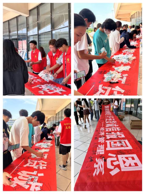 活动中,系学生干部和志愿者们通过热情洋溢的宣讲,引得许多同学前来咨询。他们向同学们详细讲解国家助学贷款的流程和不良校园网贷的危害,分发印有警示信息的小扇子,提醒同学们“诚信相贷,远离危害”,倡导大家在活动横幅上签名并拍照留念,共建诚信和谐校园。