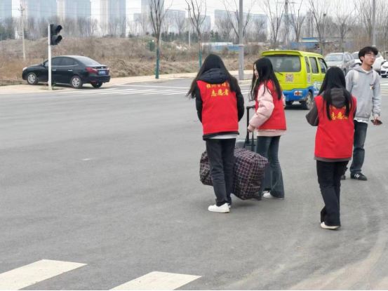 活动正值周末,志愿者们在学校北门集合,为同学们出行和返校提供服务,引导大家有序排队上下公交车,为有需要的同学搬运行李,并给一些不清楚公交路线和发车时间的同学耐心讲解。身穿红色马甲的志愿者们,用自己的实际行动传承着雷锋精神,他们忙碌的身影成为校园门口一道靓丽的风景线。
