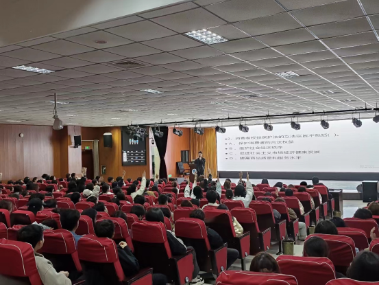 活动通过讲座的形式,结合社会热点事件,用通俗的语言给同学们讲解消费者的九大基本权利。讲座中间穿插猜漫画、权益竞答等环节,不仅调动了现场的气氛,也让同学们在游戏中将知识点熟记于心。